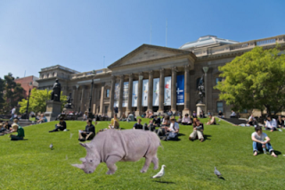 "What would happen if magically each of the trams in Melbourne were to turn into 30 actual rhinos?"