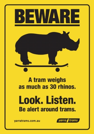 It is a warning on the how dangerous it could be to be hit by a tram published in the interests of passenger safety by Yarra Trams.