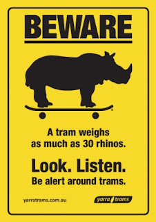 If the trams turned into Black Rhinos then Melbourne would have a bit of a problem. It would have a quarter of all Black rhinos in the world which would be an amazing thing for conserving this magnificent beast (if only!) but these are very angry and aggressive animals. They will charge for no reason and they can show what their horn can be used for (not decoration or medicine). They are also territorial and will fight each other. They can also run at speeds of about 50Km/h. On top of all of this - the city would be impossible to get out of because the roads would be blocked by huge beasts, there would be no trams, and walking and cycling would be dangerous.